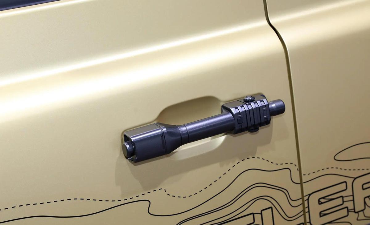 车尾部分,D柱增加了黑色的防护罩设计,备胎架使用了全新的造型,另外后侧窗还会提供侧挂包,车顶还有大面积的行李框。
