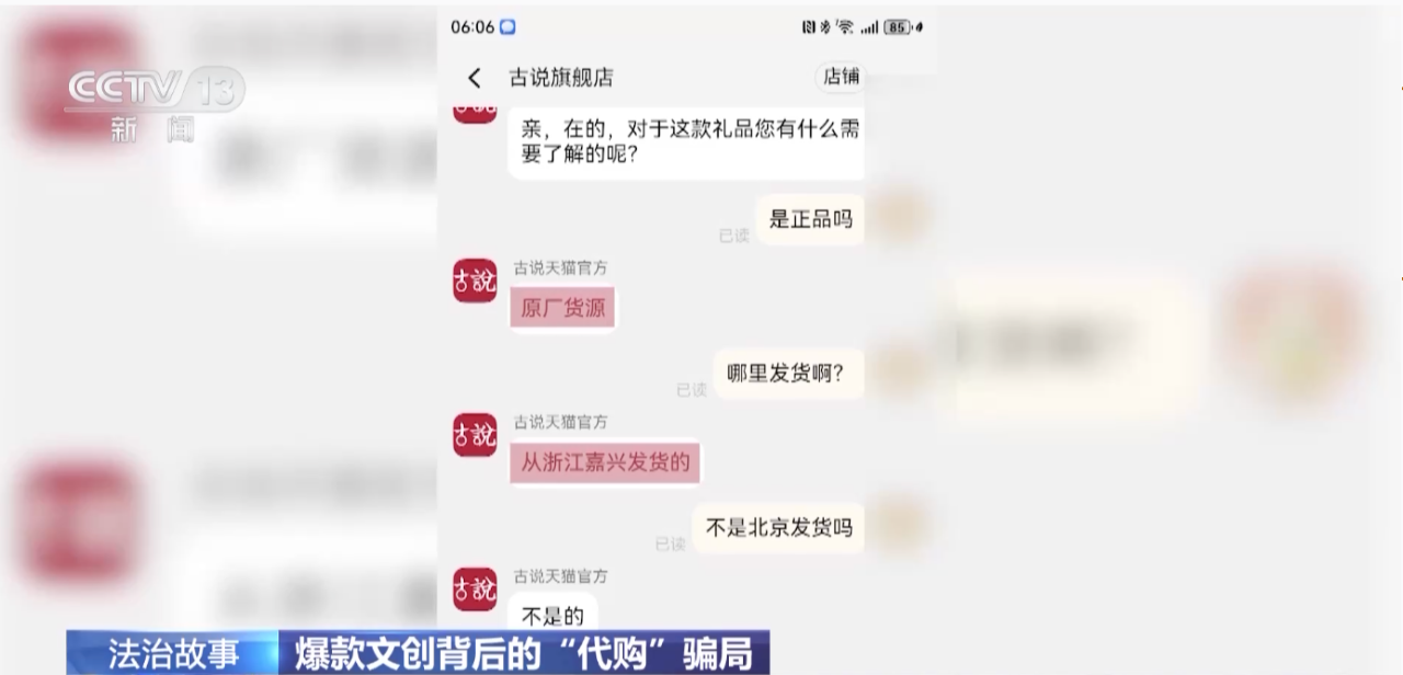 当记者以消费者身份询问客服该产品是否为正品时,客服明确回复“是正品”“从福建发货”。而另一家则直接表示是原厂货源,从浙江发货。然而,北京古代建筑博物馆的正品发货地始终在北京。